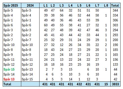 Spårstatistiken visar hur olika startspår presterade under året, både i volt och autostart. Spelprocenten avslöjar hur spelarkollektivet tänkte — och var de gick fel. Genom att kombinera dessa tre perspektiv får du en unik insikt i var det verkliga spelvärdet fanns.