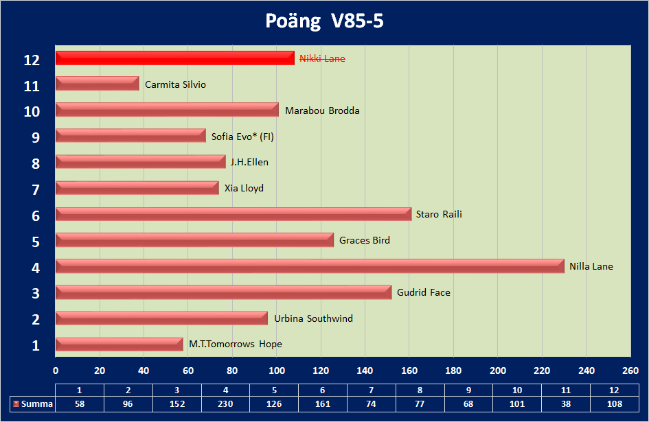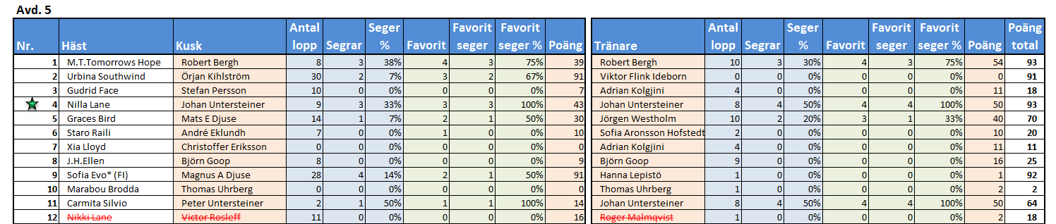 Spik: 4 B: 6-3 C: 5-10 D: 2-8-7-9-1 Skräll: 11 Struken: 12