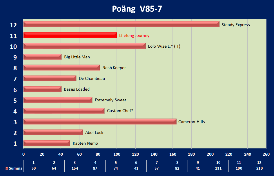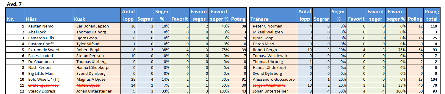 A: 12 B: 3-10 C: - D: 4-8-5-2-7-1 Skräll: 6-9 Struken: 11