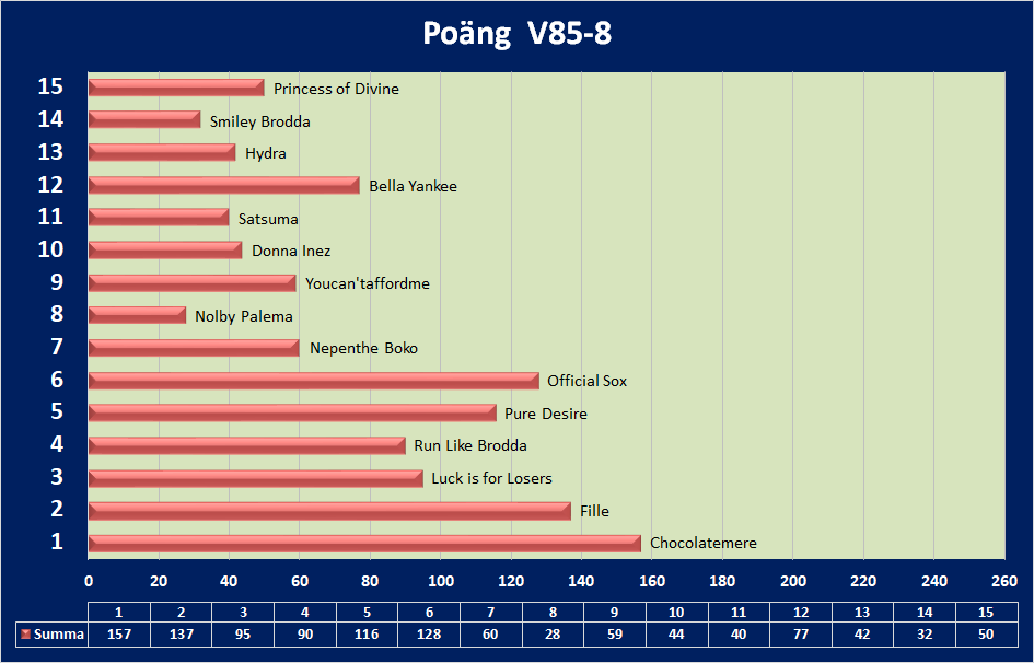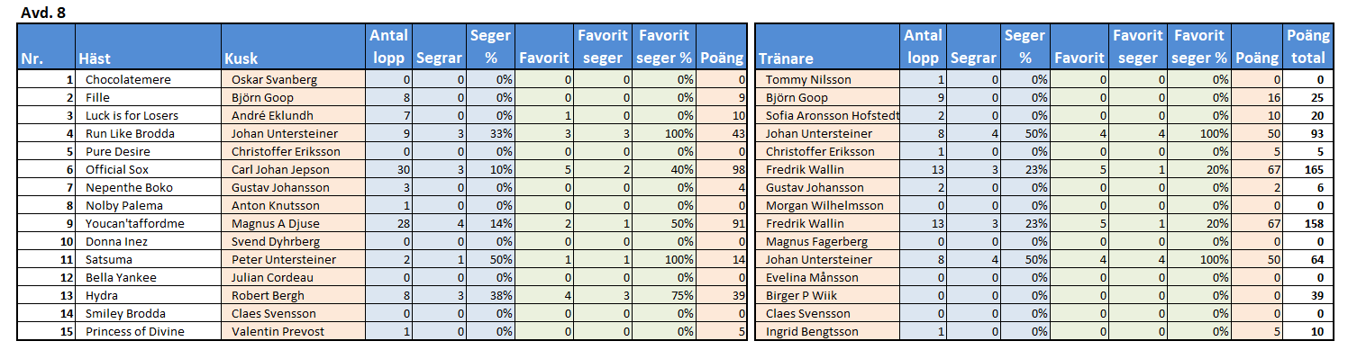 A: 1 B: 2-6 C: 5 D: 3-4-12-7-9-15-10 Skräll: 13-11-14-8 Struken: